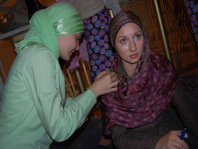 Нужно отметить, что каждая истинная мусульманка обязана носить головной убор в виде специального платка, что подтверждает ее веру в ислам. Помимо религиозного назначения платка, он выполняет еще и практическую роль, укрывая голову женщины от жаркого солнца, защищая от ветра и пыли, поэтому традиционно девушки носили такие головные уборы. Интересно отметить, что существуют десятки способов завязывания платка, причем эти навыки традиционно передавались из поколения в поколение.
